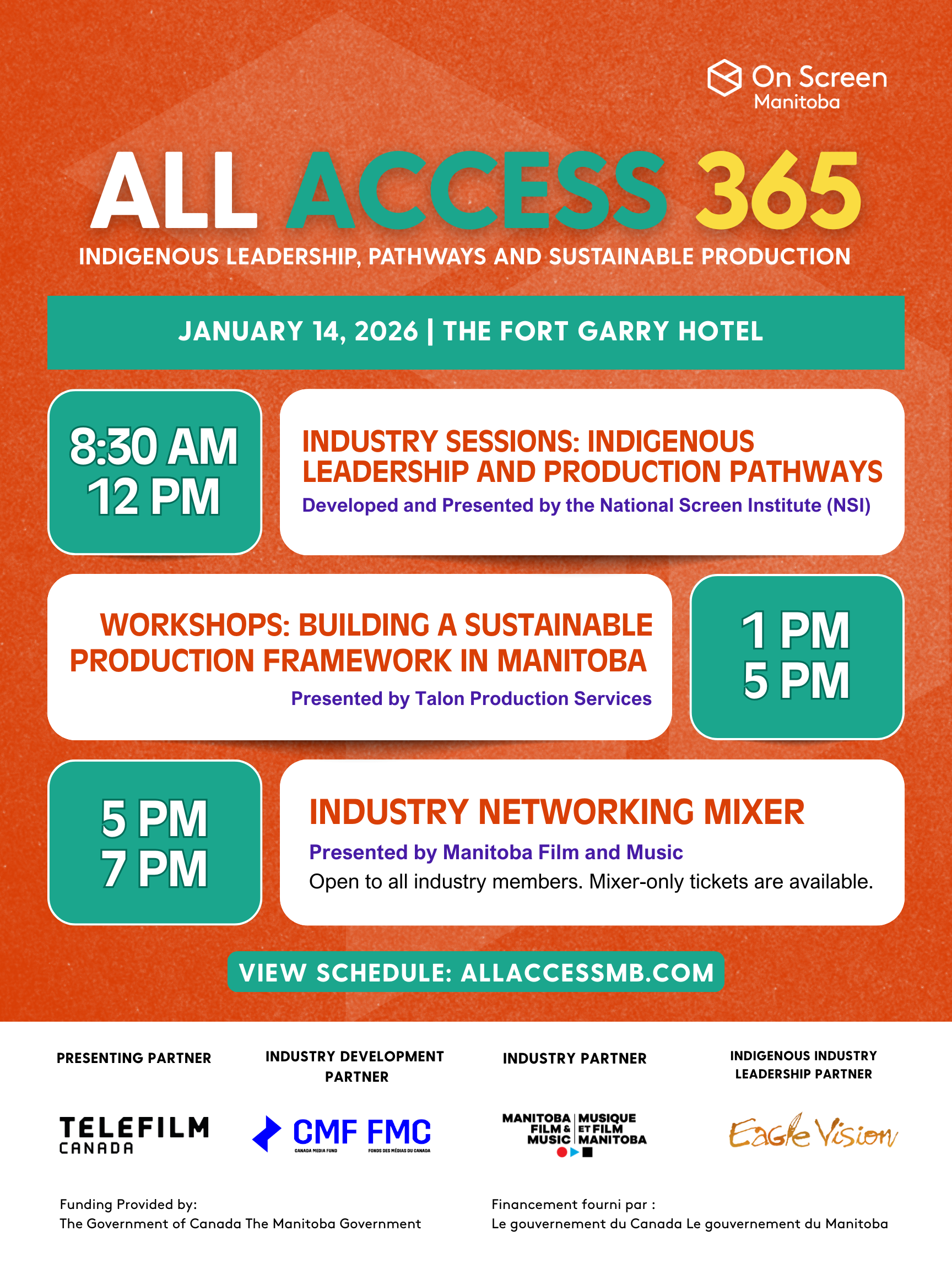 On Screen Manitoba (OSM) hosted All Access 365: Indigenous Leadership, Pathways & Sustainable Production, bringing together Indigenous creators, national screen agencies, provincial partners and industry leaders from across Canada to support Indigenous-led screen production in Manitoba.